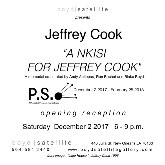 Boyd | Satellite "A NKISI FOR JEFFREY COOK" a memorial co-curated by Andy Antippas, Ron Bechet and Blake Boyd P.S. Satellites - A Project of Prospect New Orleans 2 December 2017 - 25 February 2018