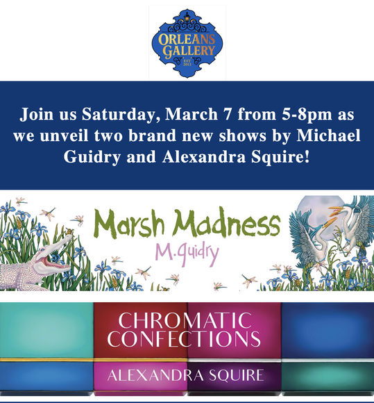 Join us on Saturday, March 7 from 5-8pm as we unveil two new shows by Micahel Guidry and Alexandra Squire!