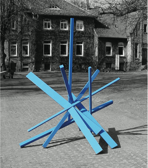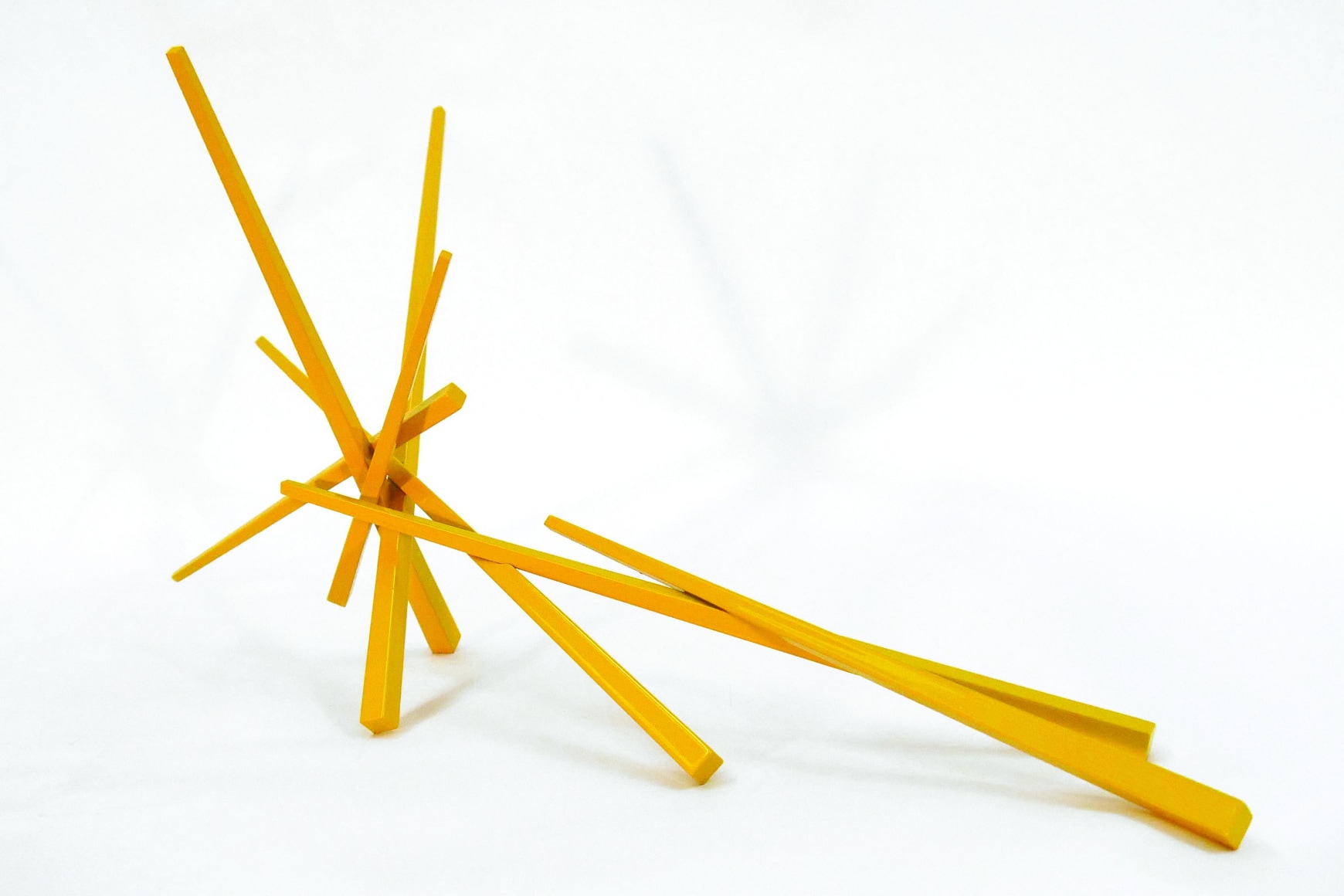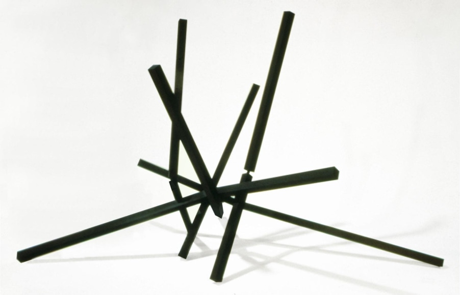 Henry is inspired by the largely hidden structures that undergird the built urban environment. The suggestions of ascent or expansion inherent in his architectonic forms reference the ways in which shapes come together in space in the postmodern metropolis. Working within a set of overarching formal parameters, he achieves a broad spectrum of spatial effects in pedestal-mounted and freestanding pieces, as well as in wall sculptures—exploring interactions between balance and asymmetry, bold forms and delicate passagework, clusters of intricate shapes and long, lithe lines. He challenges the viewer’s assumptions about gravity by creating compositions that have an ascertainable structural logic, even when the component parts trick the eye with the illusion of physical impossibility. “In recent years I have begun making the connectors within the sculptures more obscure,” he notes, “but the formal structure of the elements, the way they fit together, is a suggestion of the solidity of the form. The structure makes sense.”