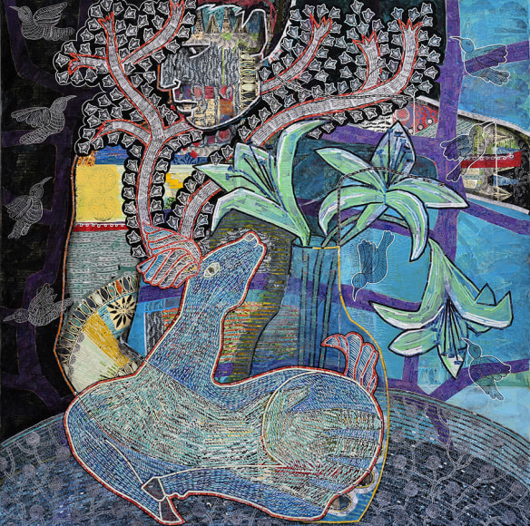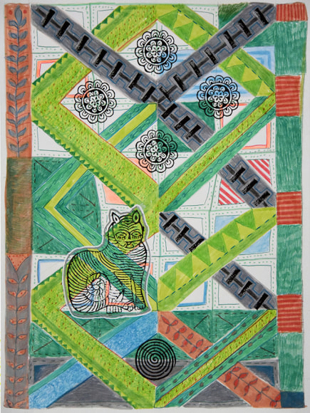 Influences include the history of textiles, outsider art, and indigenous folk art.