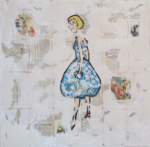Based in New Orleans, James Henderson’s work explores the concept of memory and the idea of ‘home’ as an emotional space, rather than a physical one. Utilizing found imagery and text as a starting point, Henderson collages and layers his mixed media paintings to create a rich background onto which he often adds the silhouette of a figure, an icon of a house, or colorful drawings of children or shapes. The inclusion of imagery from vintage dress patterns, children's books, literature, and other items from the past become Henderson’s visual language through which to depict the notion of how one’s past experiences, emotions and personal archeology greatly shape one’s identity.