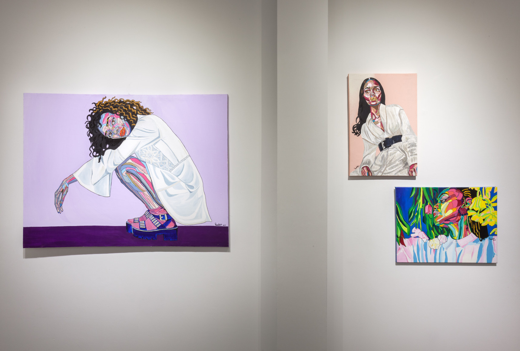 She knew a few truths about what ignited a frenzy - when going for long stretches creating art with a particular song or artist playing on a continuous loop - but still sought a clear “artistic direction". She finds that her spirit is moved by what she refers to as "depicted sentience" and through the celebration of the female form and bright, vivid colours. Her preferred medium of acrylics and watercolours on cartridge paper provides the immediacy, proximity and transparency to express her most personal experiences and influences living between Lagos, London and Johannesburg, cities she considers home.