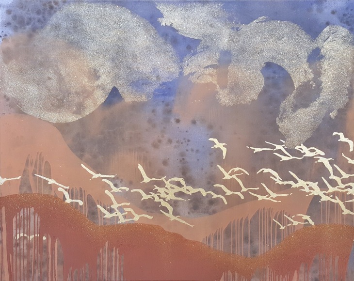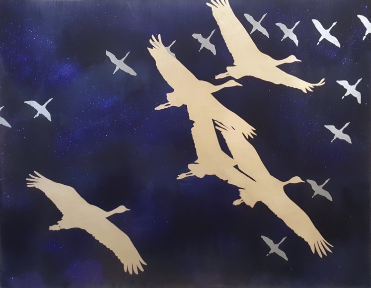 NEW ORLEANS, La—Soren Christensen is pleased to present Repeating the Unknown, the 3rd solo gallery presentation of artist Thomas Swanston. The show features new and retrospective paintings on canvas and paper. Paired down palette and simplified composition coupled with the use of precious metal leaf are the hallmarks of Thomas Swanston's Migration series.