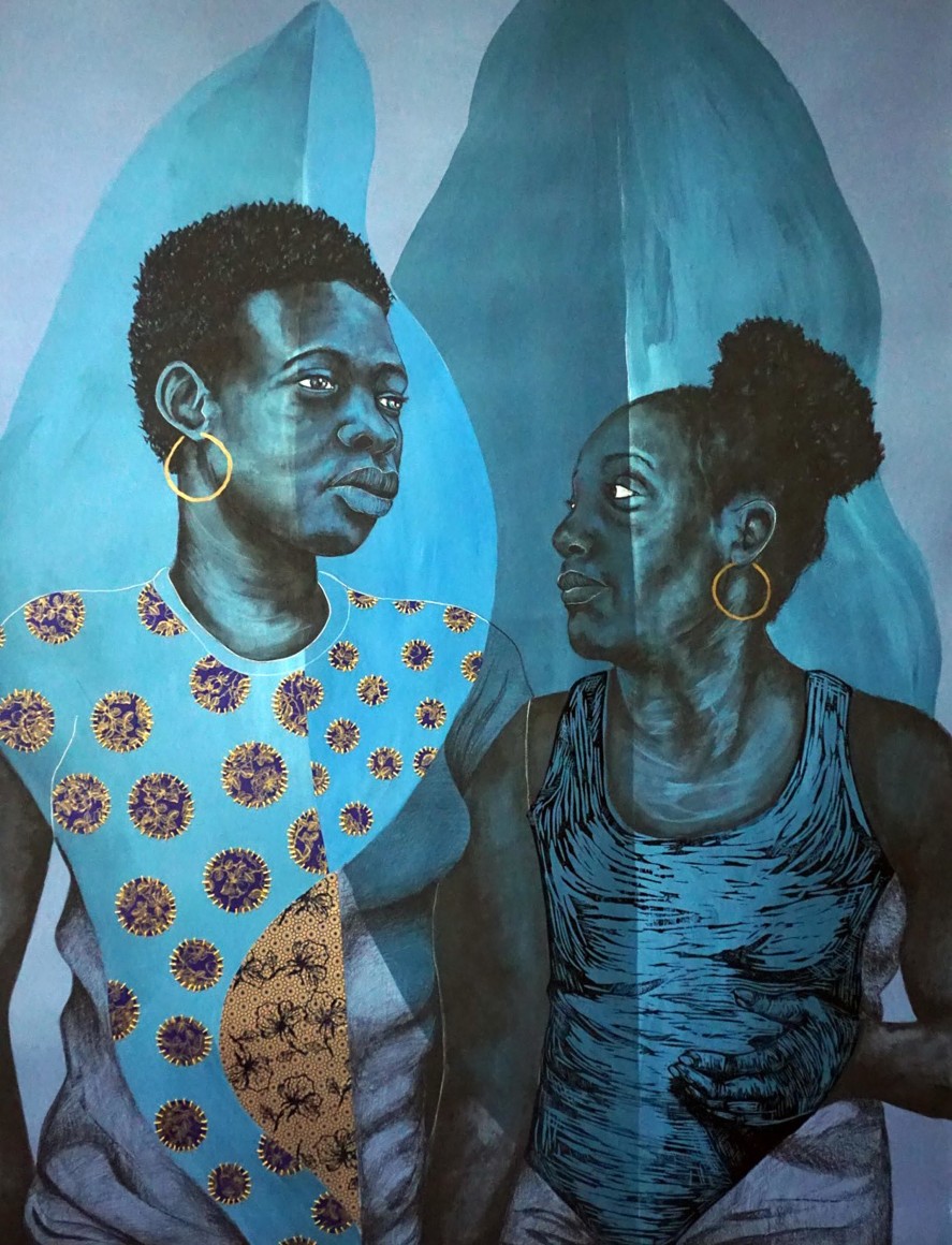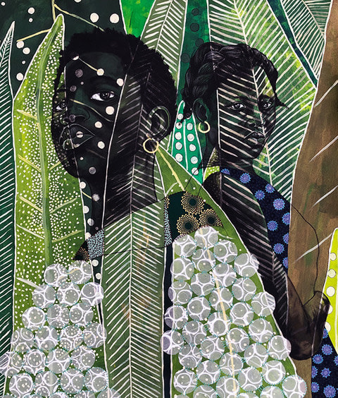 In her second solo exhibition at SJG, Delita Martin explores how women of color have traditionally been defined and commands our attention by giving them prominence through the use of large-scale portraiture. In this new series, printmaker Martin uses a variety of mediums, including various printmaking techniques, painting, drawing, collage and hand-stitching, and even repurposing vintage jewelry into her layering process.