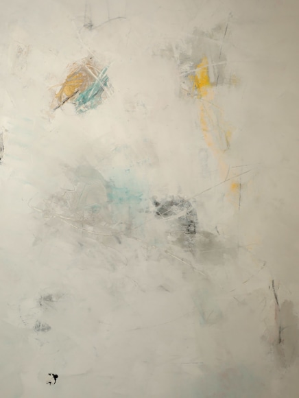 "My process for painting abstracts starts with making a simple mark. From there, it becomes the skeleton or framework of the painting. It guides what comes next and allows me to fill in the empty spaces with color, texture and different media such as chalk or pastels. Even the water in which I clean my brushes becomes a tool for creativity. I not only use my brushes but also my bare hands, towels, sponges, wooden stir sticks or whatever else inspires me to make an unintentional mark. Through this process, I become one with the canvas, allowing it to inform the final painting."