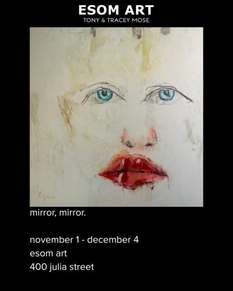 Tracey Mose uses digital media to superimpose realistic figures onto mirrors surrounded by fantasy elements, such as birds, butterflies and clouds. Most of the “Fantasy Figures” in this series are blindfolded, speaking to the concept of cancel culture. In trying to make everyone the same, we are no longer recognizing each individual’s talents and dreams. The figures are blind to this phenomenon, and they exist to keep the fantasy alive in art, music, fashion, and life.