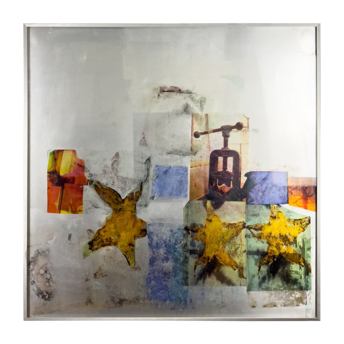 Artist Statement: James Macdonell (b. 1958, Lafayette, LA) graduated from Amherst College in January of 1980 with a Bachelor of Arts in English. As part of the Five College Consortium, he was able to study photography under Jerome Liebling, Elaine May, and Bill Arnold at Hampshire College, and printmaking under Barry Sease at Mount Holyoke. In 1976, James began working a summer job on the island of Captiva, FL for noted artist Robert Rauschenberg. For James, this marked the beginning of a transformative period that reshaped his perception, worldview, and aesthetic vision. He observed, firsthand, Rauschenberg’s processes; the technical dynamics of producing large integrated structural paintings (“combines”). Through assemblage, James understood the symbolism, interpreted the values, and developed a sense of order for his work. Their friendship and creative dialogue spanned more than three decades until Rauschenberg's death in 2008. James is also an accomplished musician, and his love for music is honored in many of his works of art. Over the years, he has had the opportunity to collaborate with some of the 20th century's most noteworthy artists including, Talking Heads, Tom Tom Club, Paul Simon, Bryan Ferry, Robert Palmer, David Byrne, John Sayles, and Sesame Street to name a few.