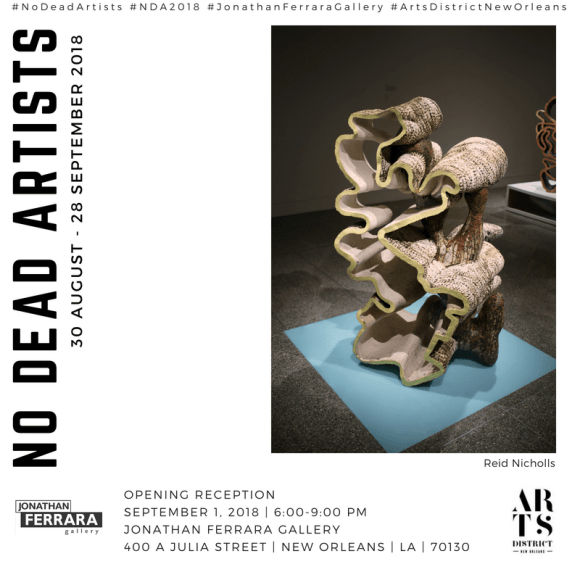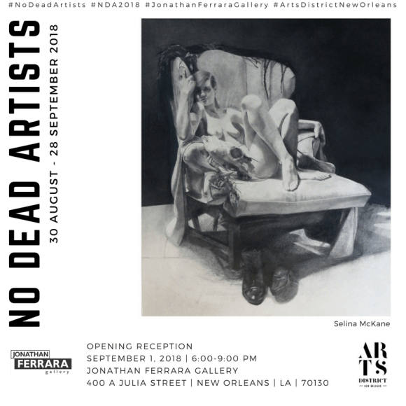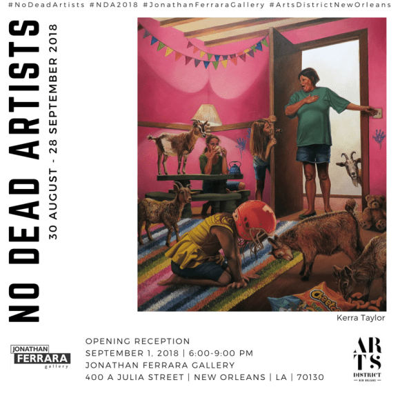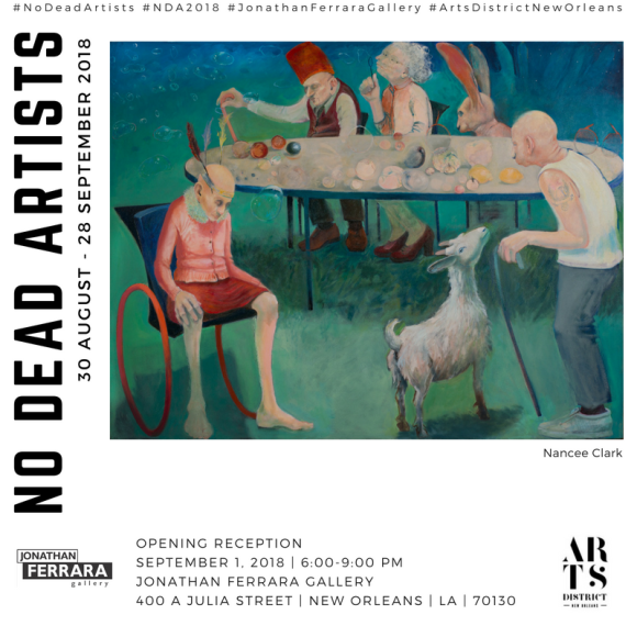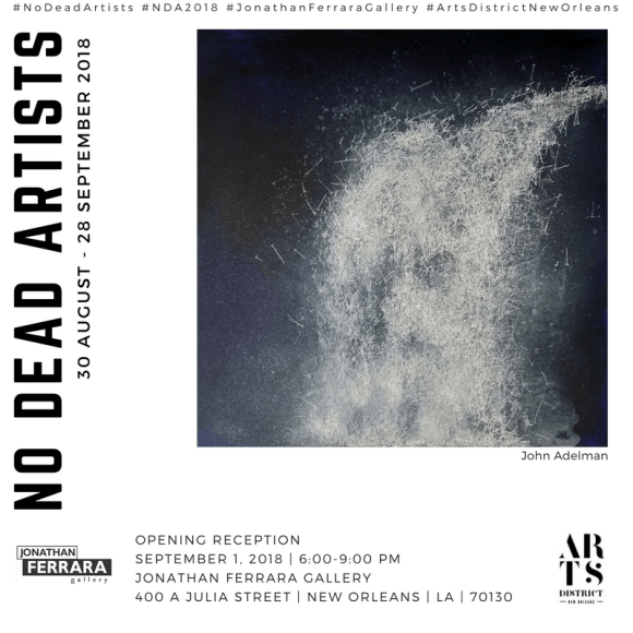 For more information, press or sales inquiries please contact the gallery at 504.522.5471. Please join the conversation with JFG on Facebook (@JonathanFerraraGallery), Twitter (@JFerraraGallery), and Instagram (@JonathanFerraraGallery) via the hashtags: #NoDeadArtists, #NDA2018, #JonathanFerraraGallery and #ArtsDistrictNewOrleans