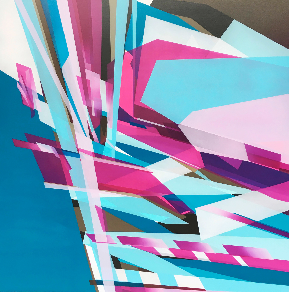 Chroma is a visual expression of how my experiences and memories affect my perception of place and space through the dimensionality of color. To me, life is fragmented and layered, a mosaic of experiences interwoven with reflection and intuition: the places we visit, the homes we live in, the environments we explore – each overlapping and influencing one another. Through abstraction, shape, color, and scale I render a refracted visual reality, and with the pieces in Chroma, color’s role comes to the fore.