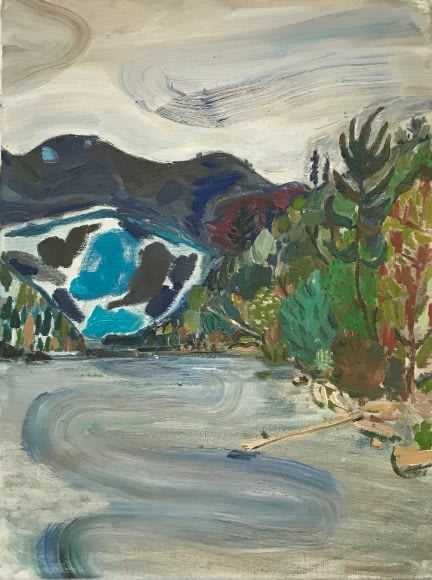 The paintings address these contradictions as well. The grid and row of small color-saturated paintings are displayed sequentially—the result of a daily painting practice this summer. They are unabashedly dazzling, romantic color studies of places near my home in the Hudson Valley, NY and Cape Cod, MA. Two locations that for 150 years have inspired romantic, patriotic and colonialist landscape paintings.