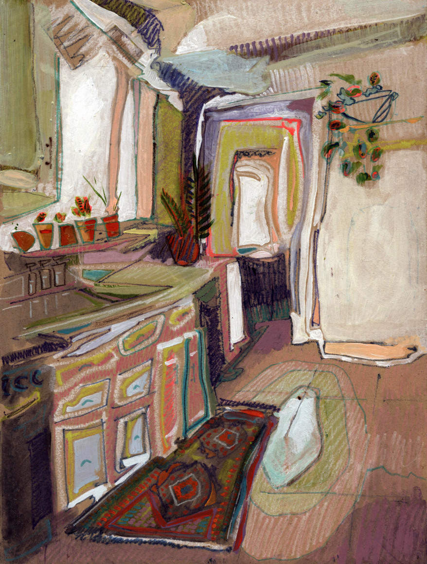 Encaustic Monotype, wax, oil, dry pigment on paper, framed, 20”x16”