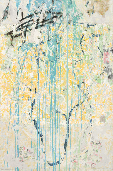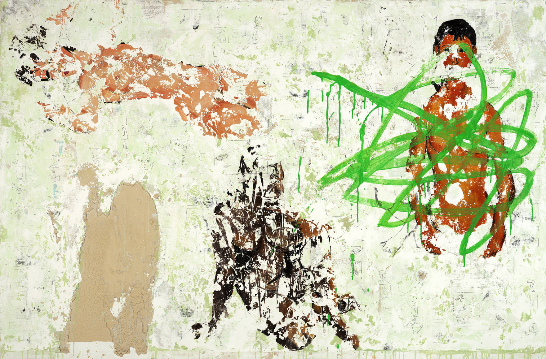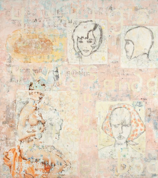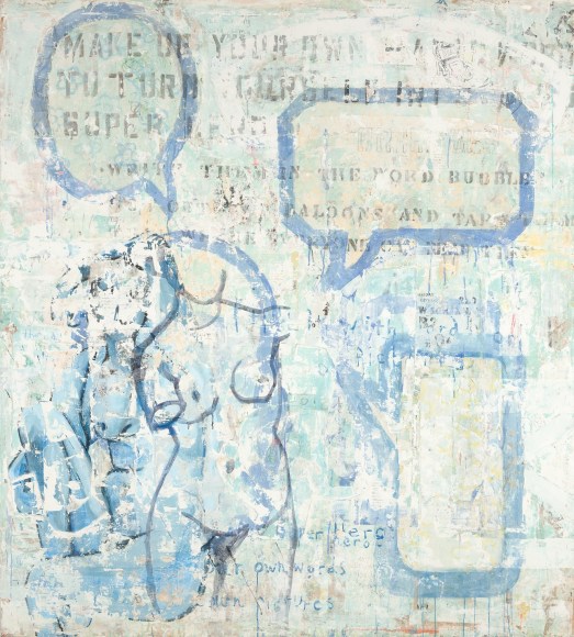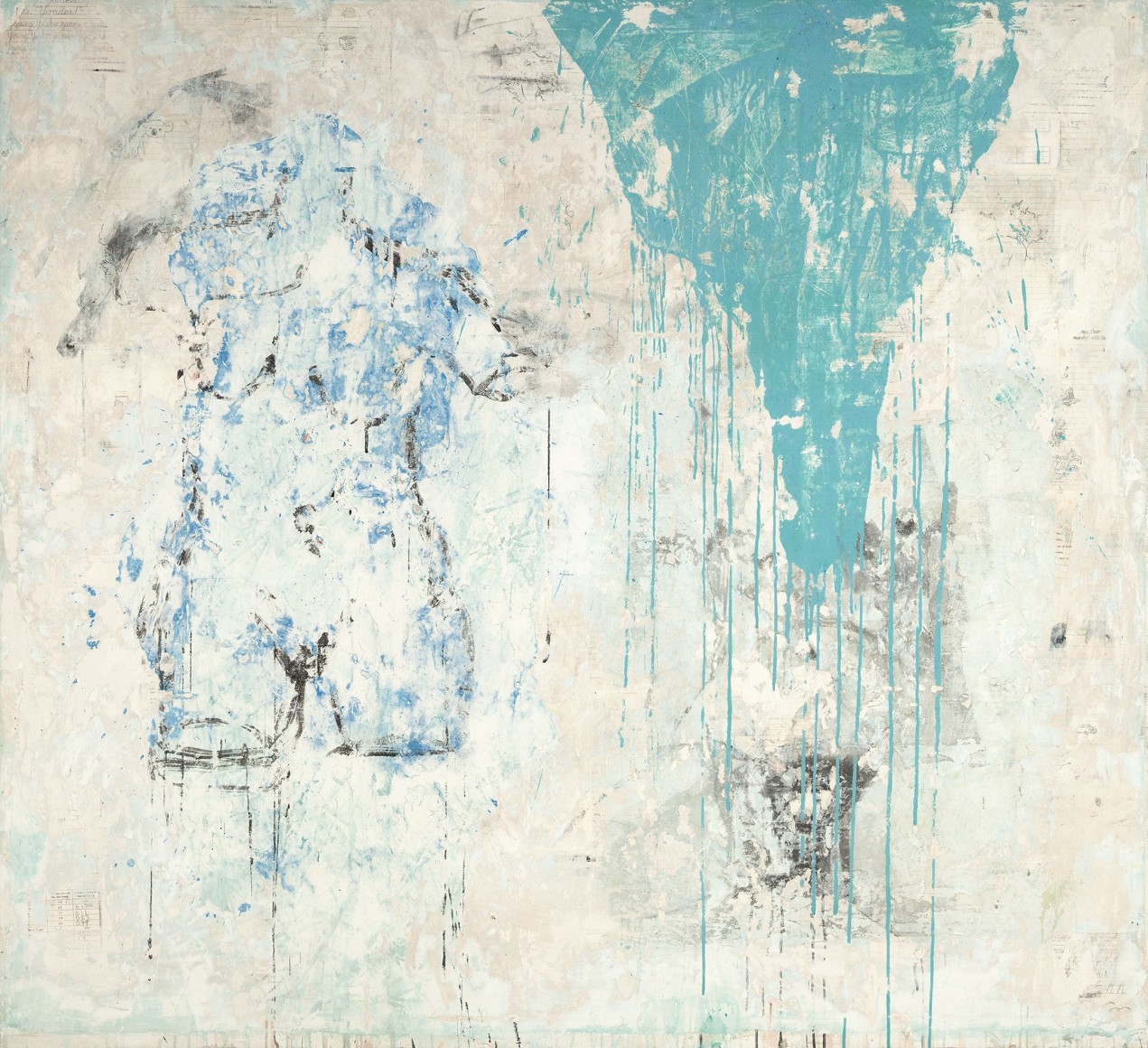 The distressed works are constructed using an additive and subtractive process. Layers of collage – literal debris from the artist’s life including letters, receipts, books, and fabric – are built up and manipulated with paint, modeling paste, marble dust, and plaster. The compositions, which include superimposed words, textures, and images, are repeatedly sanded, scraped, carved and repainted. They retain a sort of palimpsestic record of preexisting stages and become metaphors for the phenomena of recollection. In Austerlitz, W.G. Sebald, wrote, "Our concern with history...is a concern with preformed images already imprinted on our brains, images at which we keep staring while the truth lies elsewhere, away from it all."