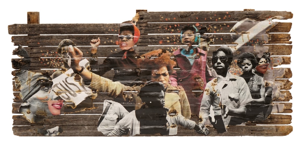 Lavett Ballard debuts her first solo exhibition at STELLA JONES GALLERY with a wonderfully cohesive presentation of works. Ballard breathes new life into our collective American stories, awakening a curiosity to expand our knowledge of ancestral heroes and heroines. She offers historical context to her collages, using photographs, newspaper clippings, and repurposed wooden fencing as her canvas. The fence is a symbol of divide, not unlike how racial and gender identities can be used to divide us.