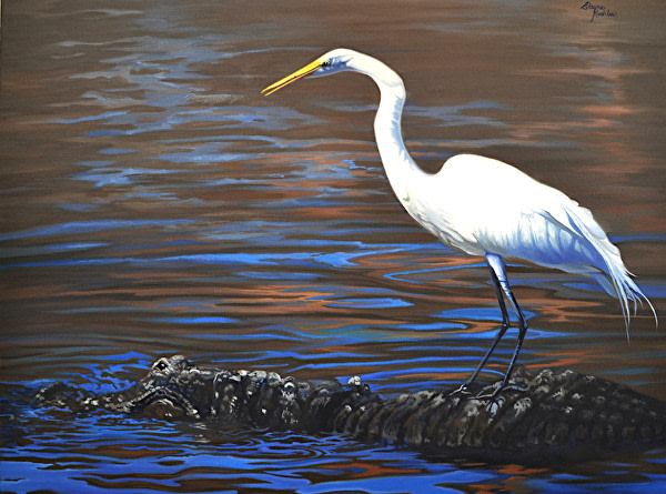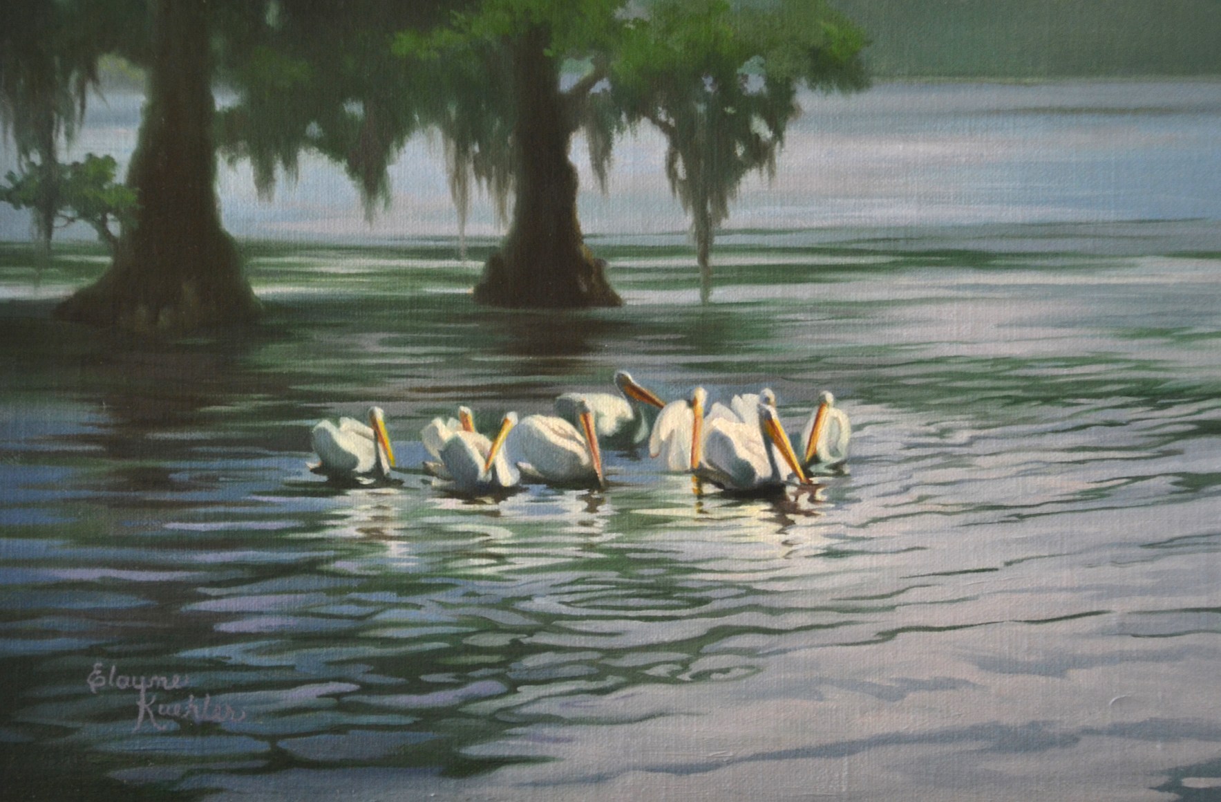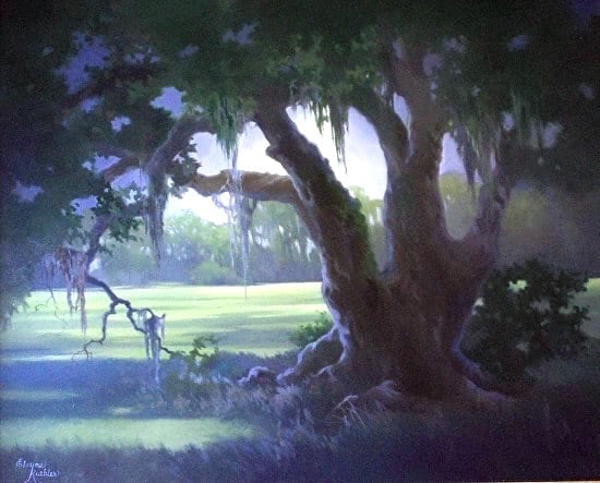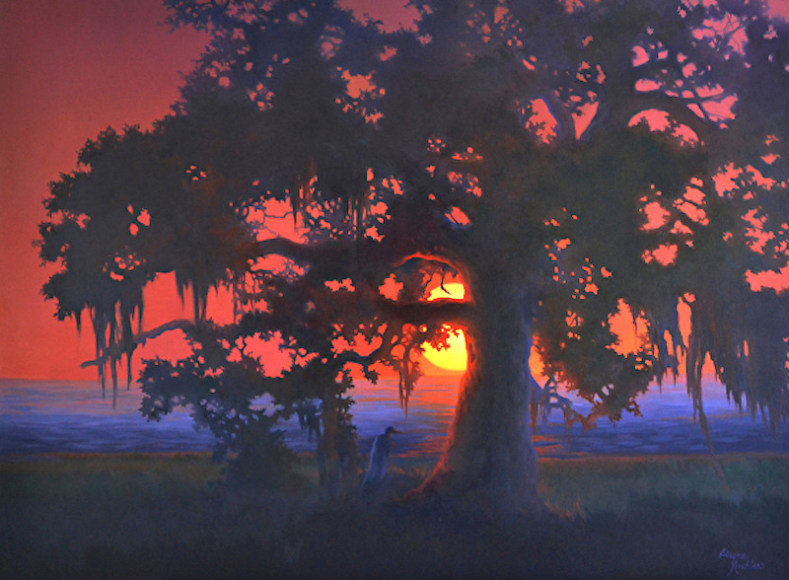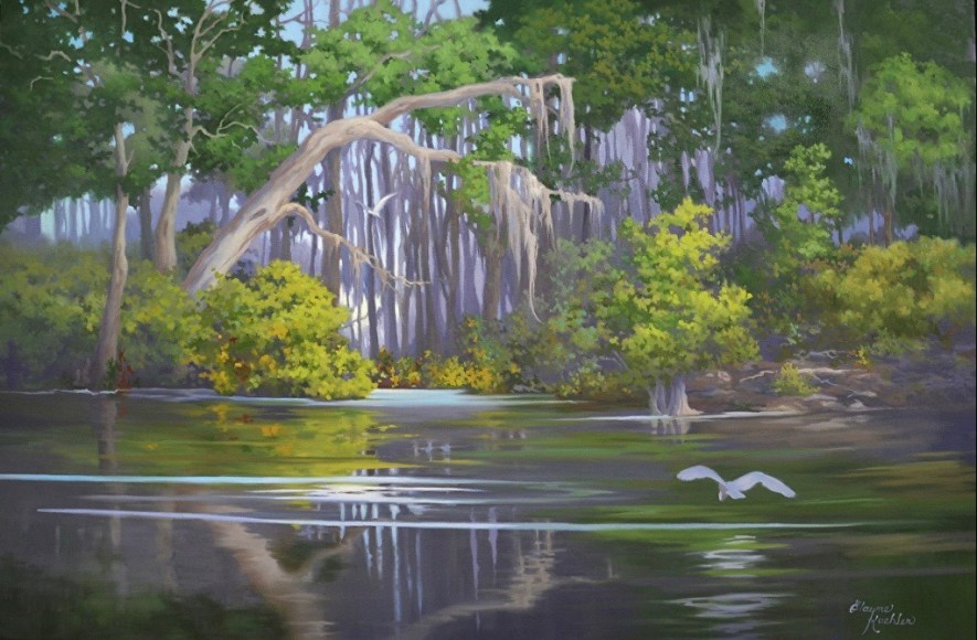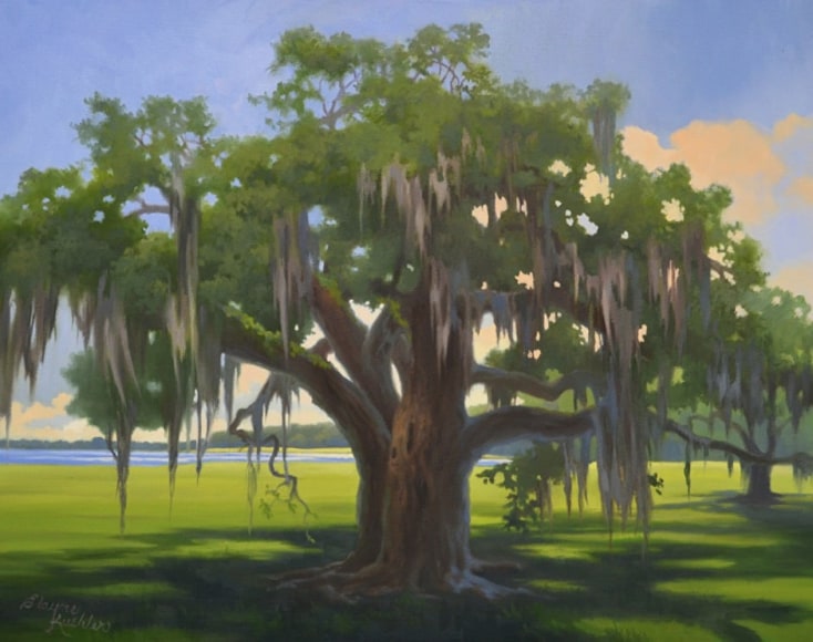 Baton Rouge artist Kuehler, a “ romantic realist”, often paints plein-air to capture the breathtaking and wild beauty of Louisiana wetlands.