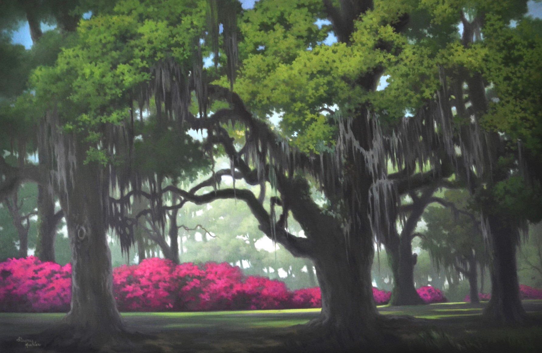 About the Artist: I am a Baton Rouge native and known for being a romantic realist with a passion for capturing the beauty I see in life. I strive for the truthfulness of nature, her colors, her designs by rendering them freehanded. My still lifes are painted directly from life without the use of photography. Landscapes are started on location and finished in my studio with photos I have taken. Nature is the best teacher and her unbounded beauty can’t be topped. My chosen medium is oil but I love to work in pencil and enjoy gouache as well. I find endless still life composition in my own home and gardens. I am absolutely astounded with Louisiana landscapes, especially the ones that encompass the live oak. I find great inspiration indoors and out.