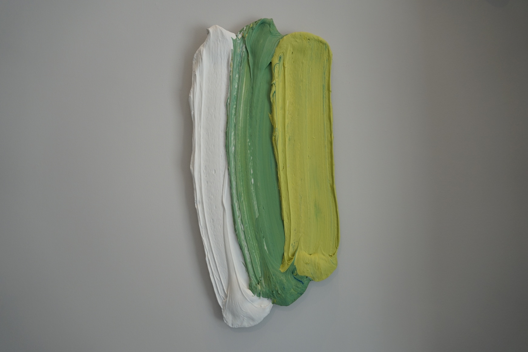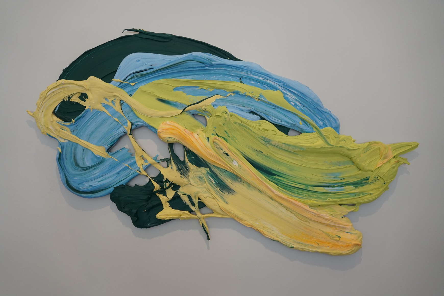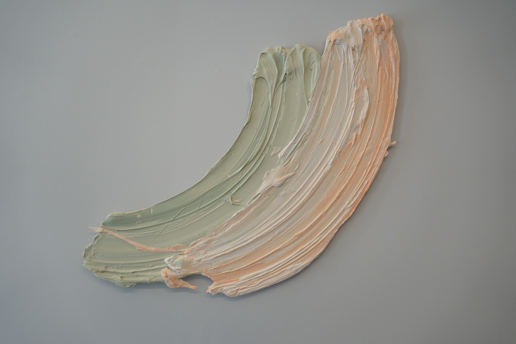 Martiny works with paint, color, and form; elements from the history of painting often referring to color or manner of paint application from diverse areas on the art-historical timeline. His current exploration is in the presence and power of gesture made to exist forever in the present. “What I want to happen is for the space between the painting and the viewer to become activated, encouraging the viewer to form a relationship and interact with the work. Beyond an observational viewing experience, I am encouraging engagement and participation with the painting. By eschewing the ground (canvas or panel) altogether, the painting directly addresses the viewer and relates more dynamically to the space around it.” These massive brushstrokes offer a potent exchange inviting the viewer closer, even inside the work. The intimacy is instantaneous and intensely visceral. His paintings are not a depiction of an experience, rather they are the experience.