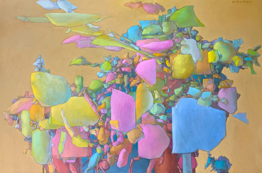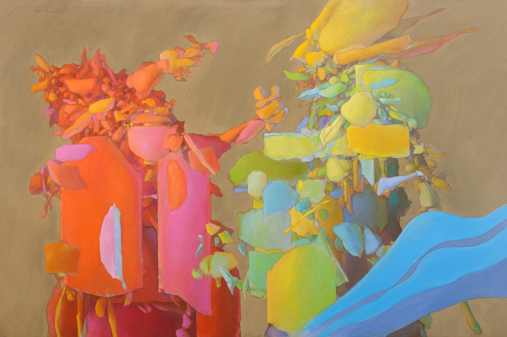 In his eighth solo exhibition with Callan Contemporary, internationally renowned artist José-María Cundín debuts a suite of new oil paintings that evoke the traditions of Surrealism, Abstract Expressionism, and absurdist humor. He imagines the paintings as emissaries to a future in which a society of nature lovers has banded together in the wilderness to escapethe trappings of technology.