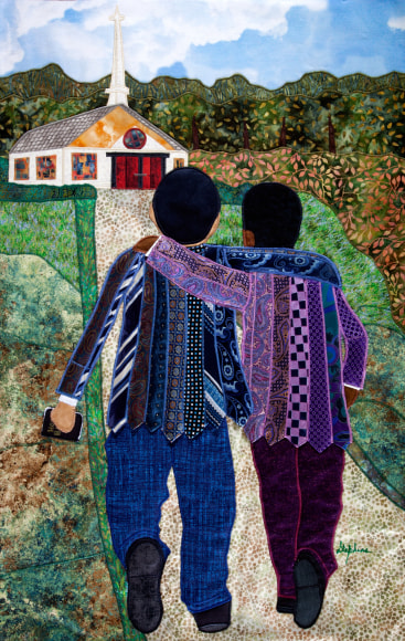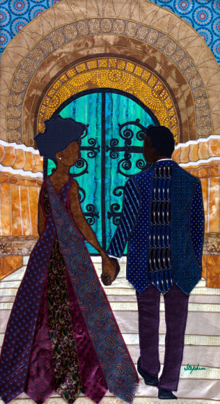 STELLA JONES GALLERY will feature Master Quilter, PHYLLIS STEPHENS in her second solo exhibition in which she continues to use innovative and cutting edge techniques for her mixed media quilts. This exhibition drew its inspiration from HARRY JONES, the very stylish late co-owner of SJG who was well-known for wearing bow-ties. STEPHENS repurposes JONES’ ties as well as others, in varying colors, sophisticated patterns and fabrics throughout each of her works, while using the broad theme of LOVE - an ode to the marriage and professional partnership of STELLA and HARRY JONES.