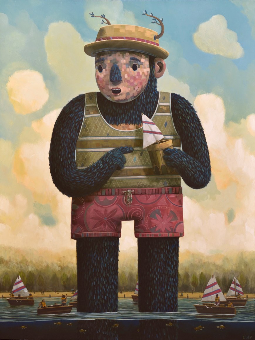 Wild Wood & Water, a collection of recent paintings by Charleston based artist Nathan Durfee. Both deep woods and deep waters have dream-like qualities, and these paintings will explore surreal narratives in these settings.